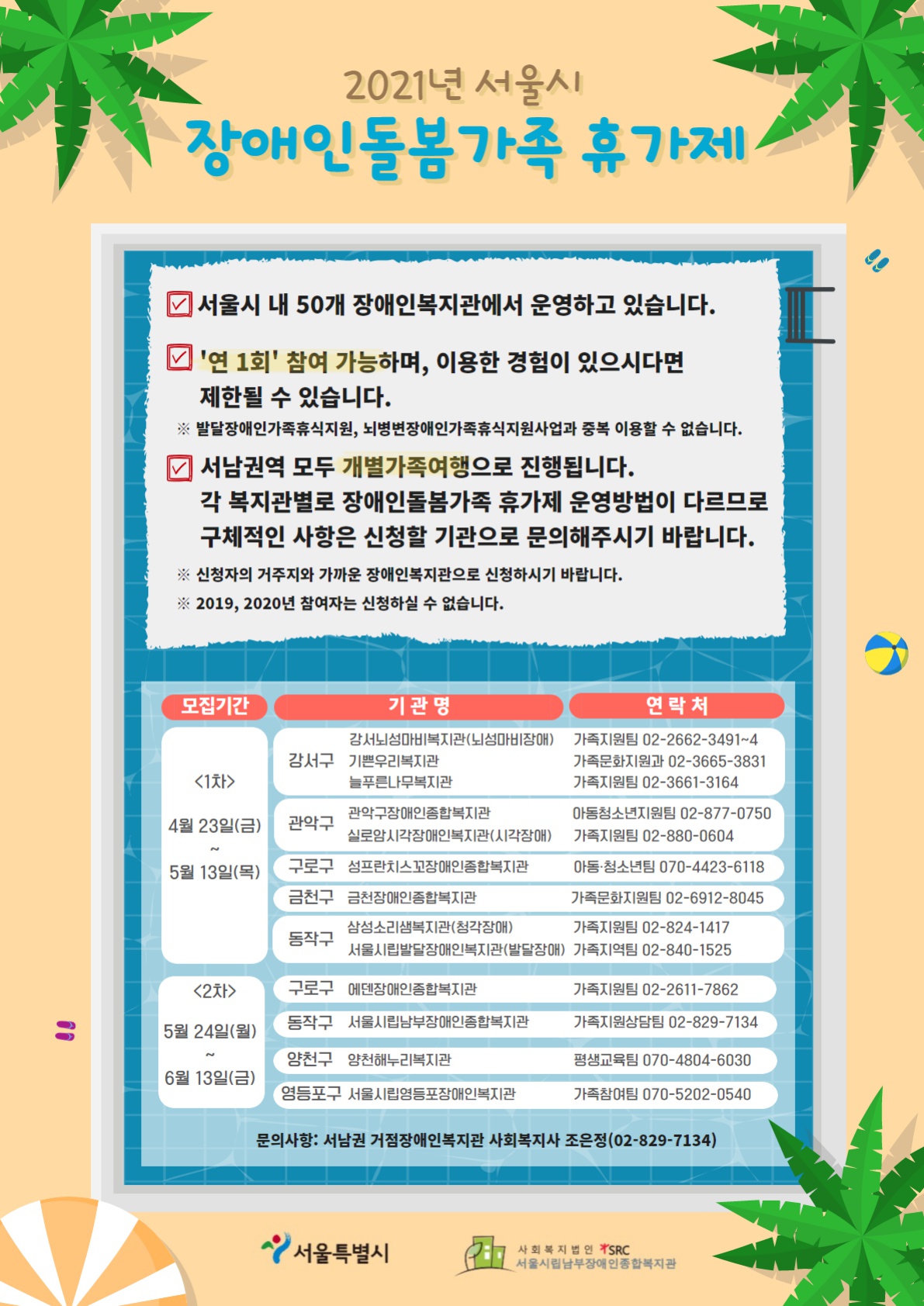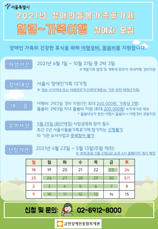 2021년 장애인돌봄가족휴가제 '힐링~ 가족여행' 참여자 모집 안내드립니다.