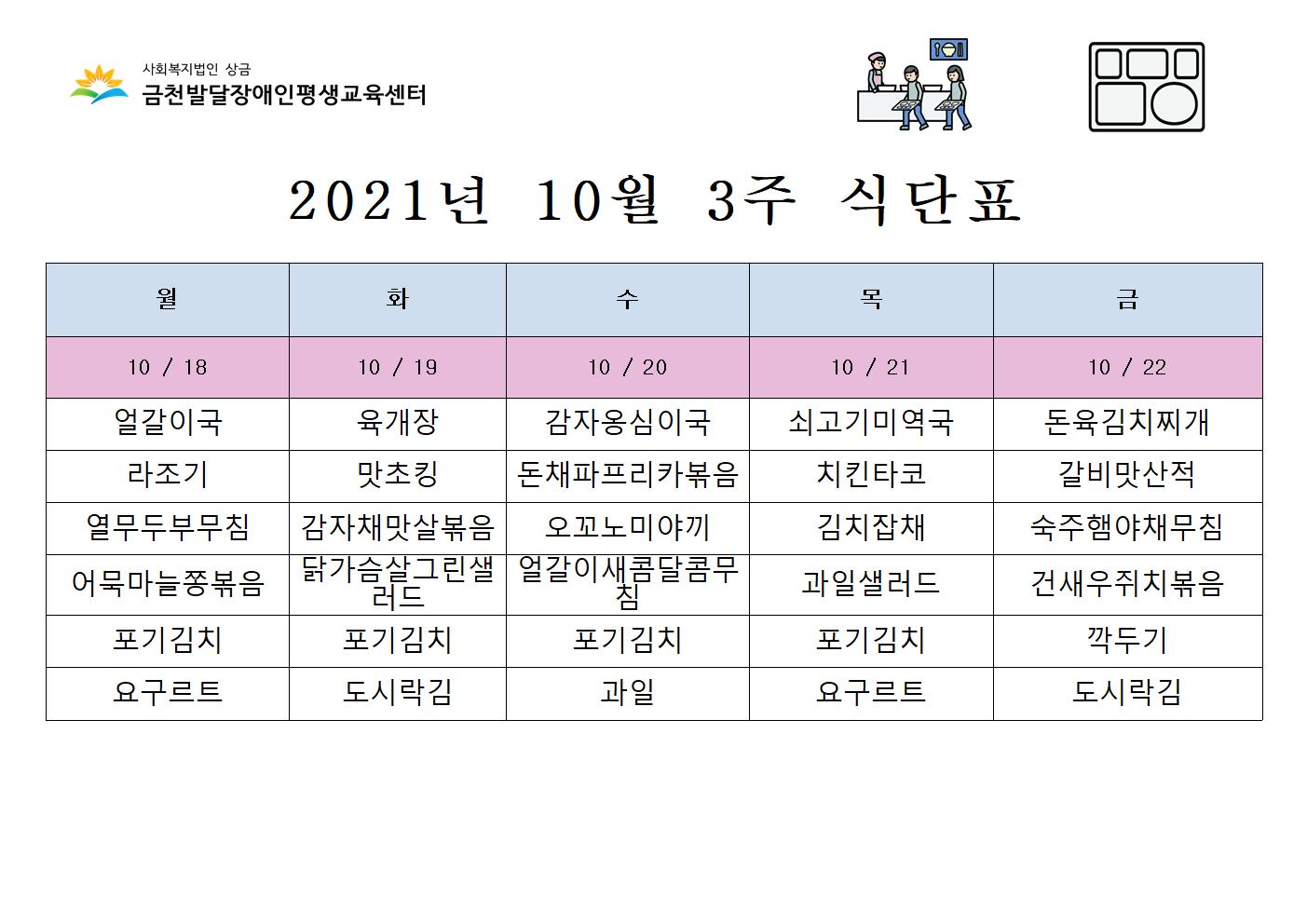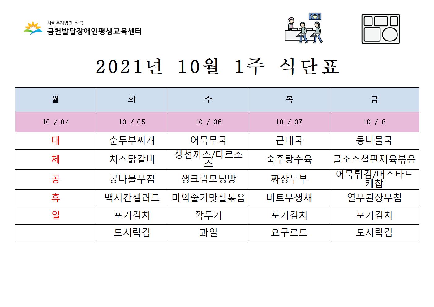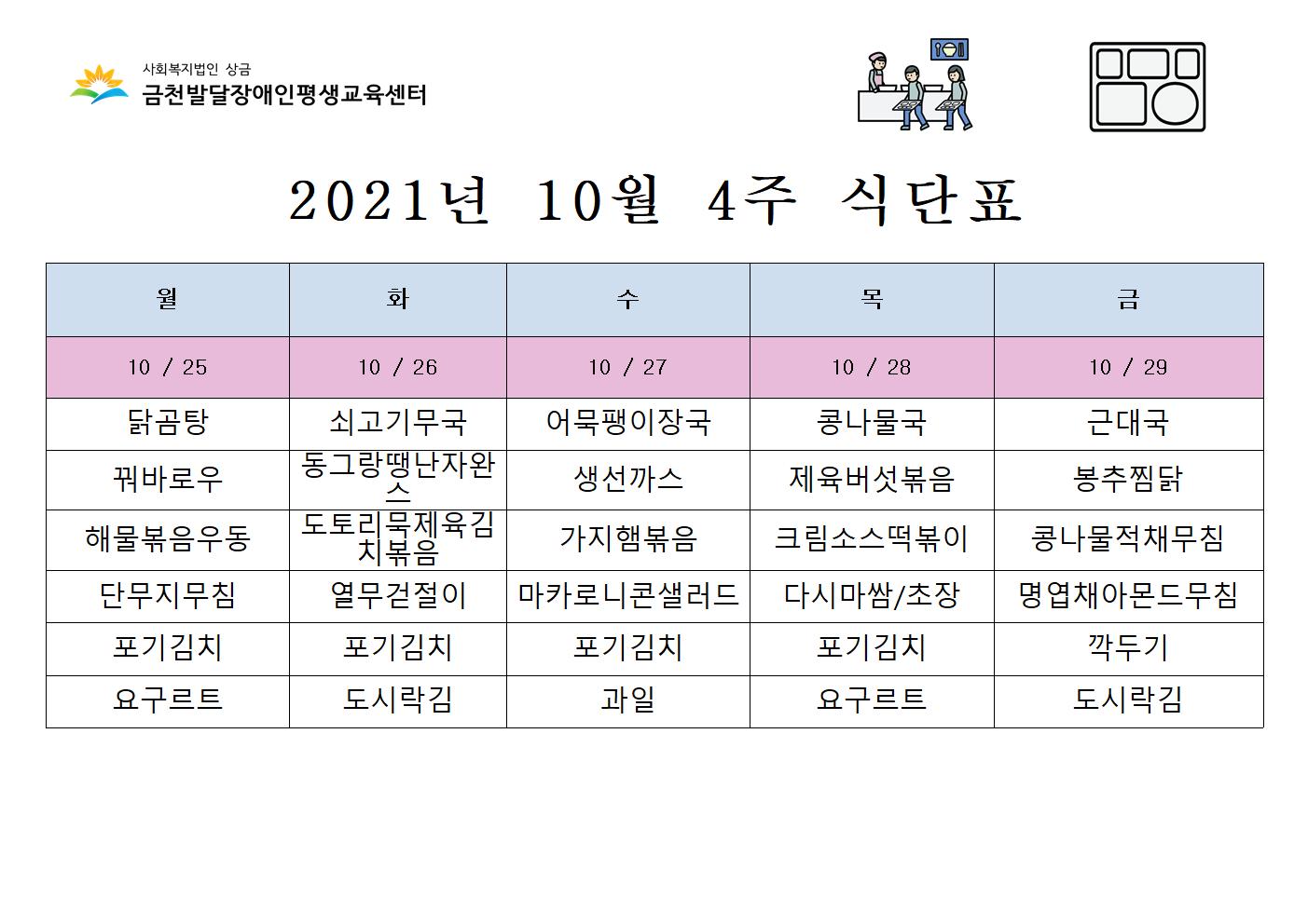 10월 4주 급식 식단표 안내해드립니다.