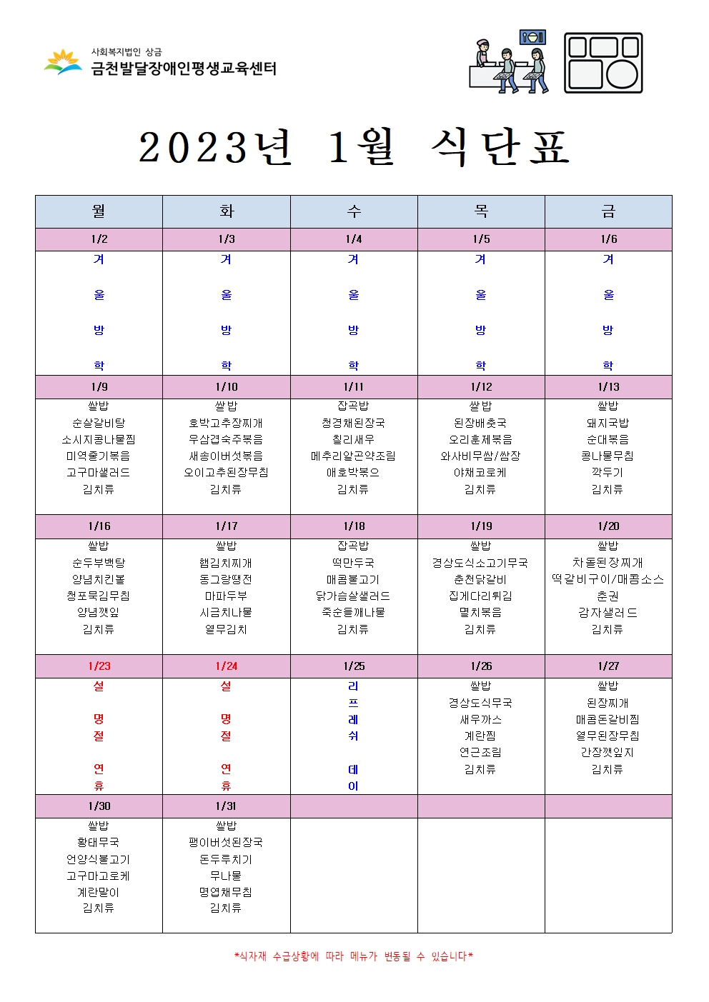 금천발달장애인평생교육센터 2023년 예산서 공지