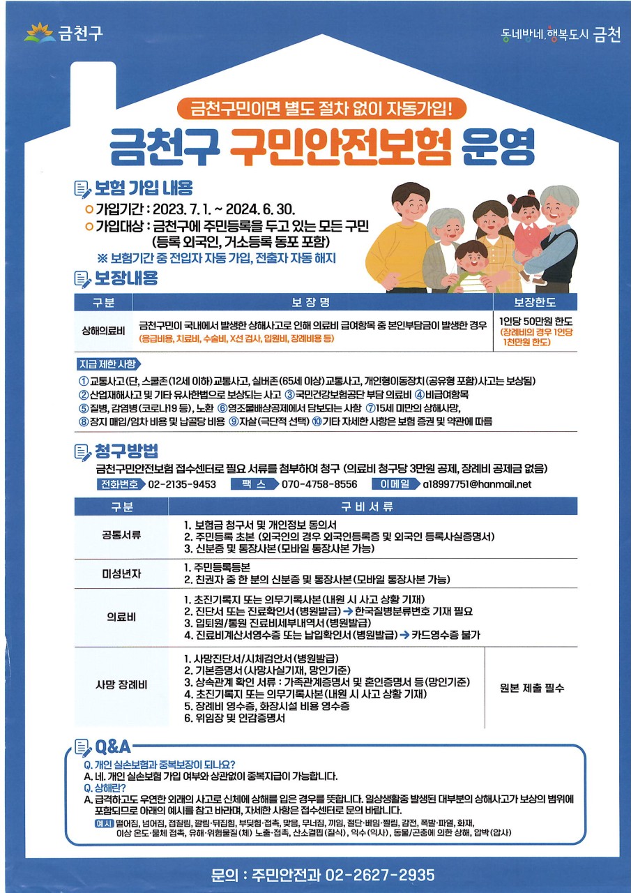 금천구에서는 구민의 안전을 위해 '금천구에 주민등록을 두고 있는 구민'이면 자동으로 가입됩니다.
