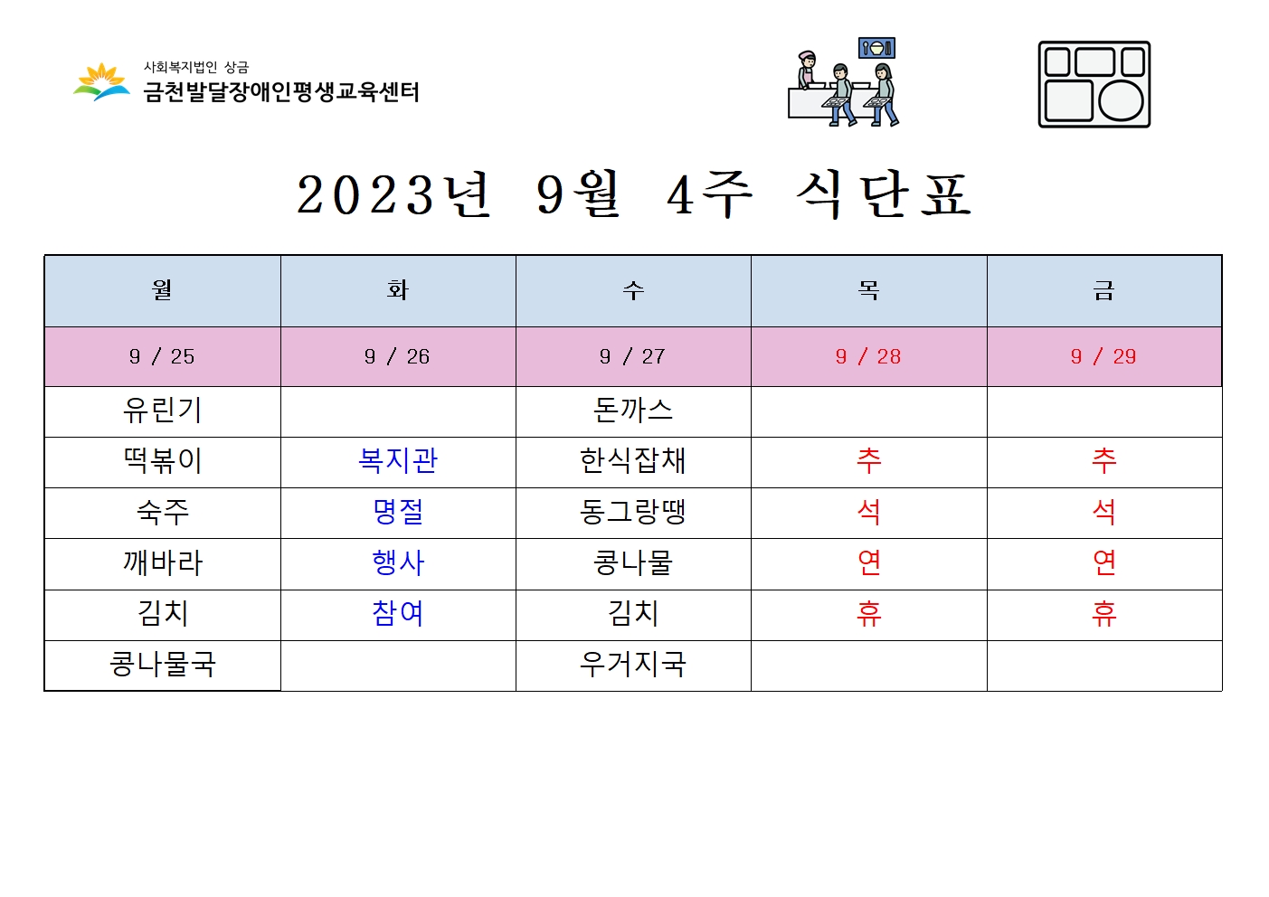 2023년 9월 4주 급식 공지합니다.