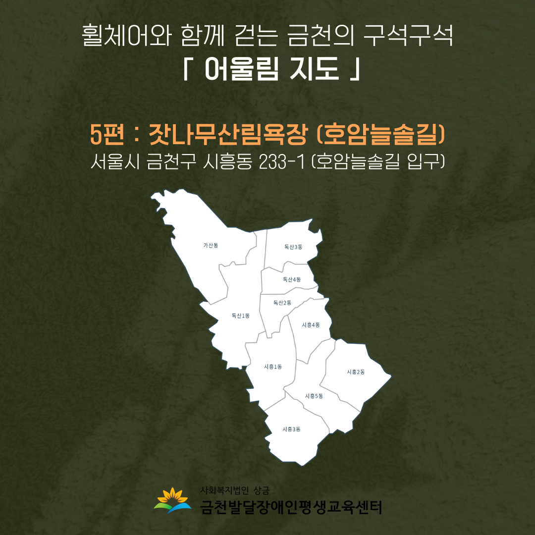 [휠체어와 함께 걷는 금천의 구석구석 '어울림지도' ]*'어울림지도'란? 금천발달장애인평생교육센터 이용자가금천구 내의 지역사회 시설을 직접 탐방하고 리뷰하여 더 나은 금천구의 무장애 ....