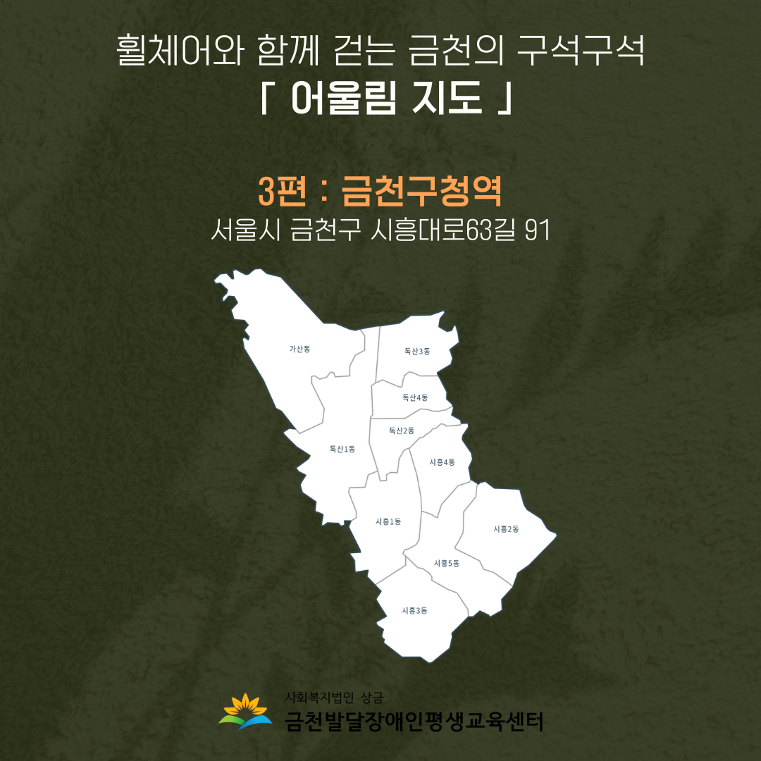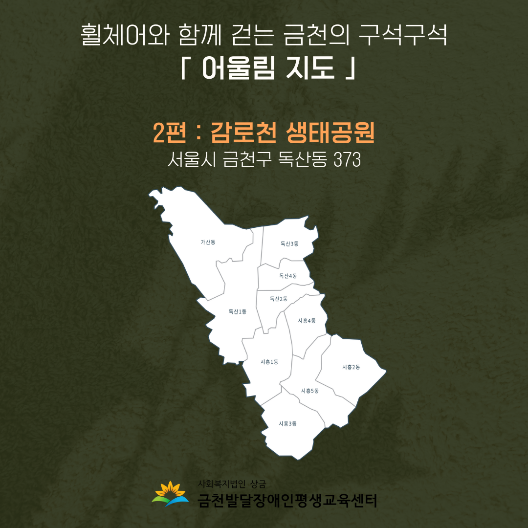 [휠체어와 함께 걷는 금천의 구석구석 '어울림지도' ]*'어울림지도'란? 금천발달장애인평생교육센터 이용자가금천구 내의 지역사회 시설을 직접 탐방하고 리뷰하여 더 나은 금천구의 무장애 ....