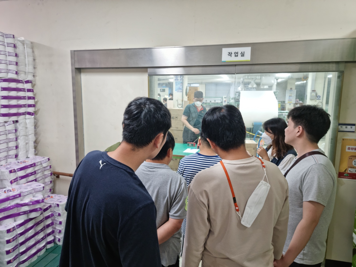 이후 시설을 둘러보며 화장지의 생산 과정을 친절히 설명해주셨습니다.