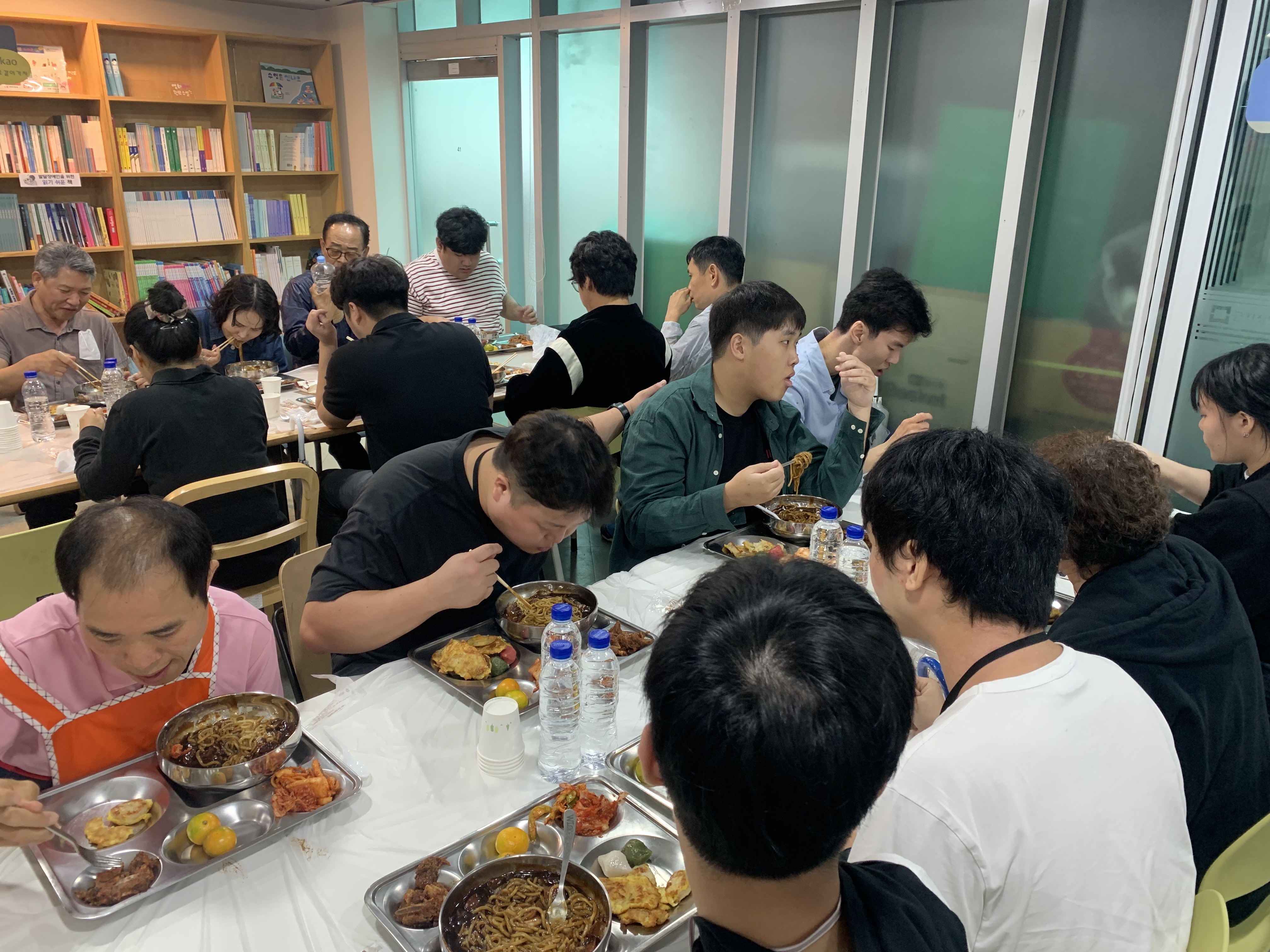 짜장면과 전, 송편 등 추석음식을 먹으며 추석 분위기를 느끼고