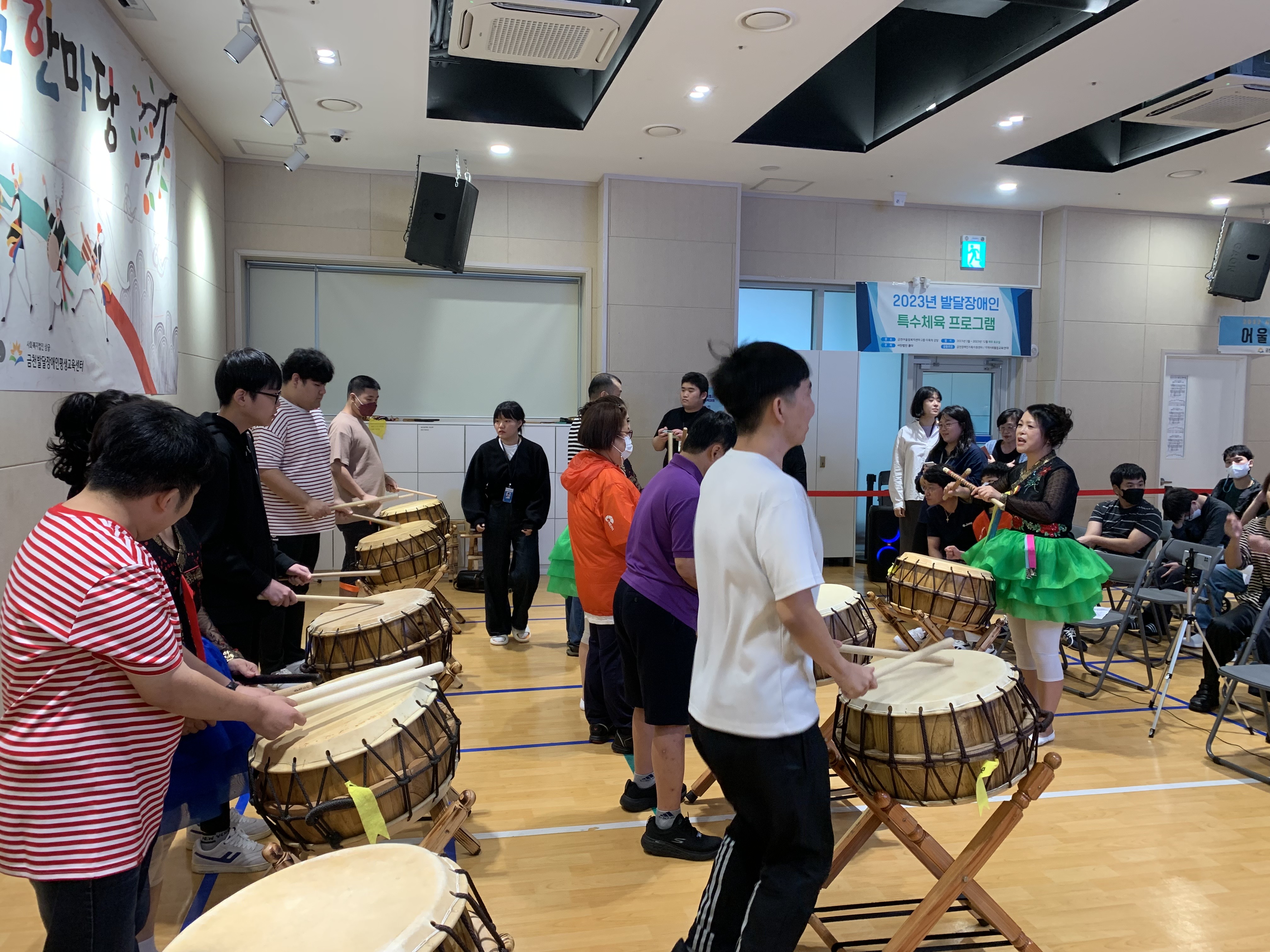 이용자 참여시간을 마련하여 무대에서 함께 난타북을 두드리며