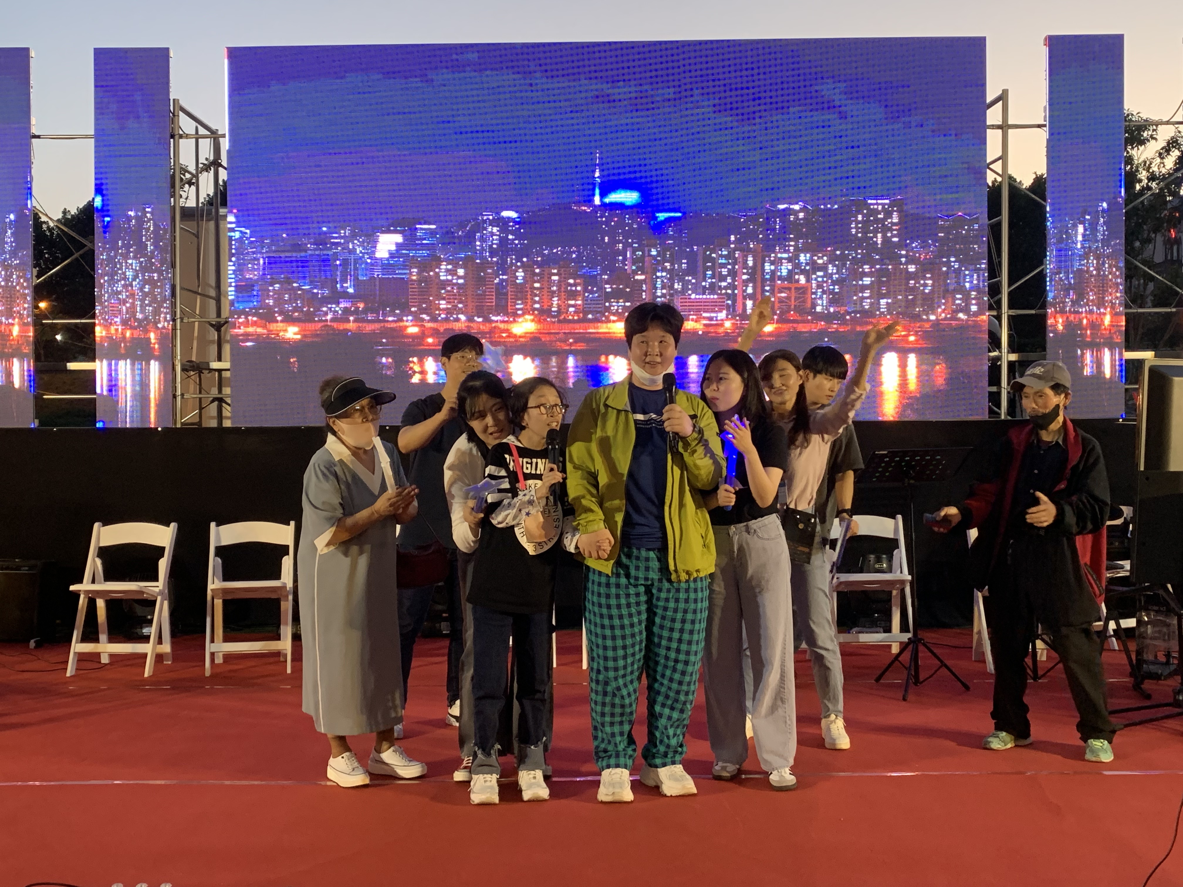 센터에서 이용자분들과 맛있는 저녁 식사 후 안양천 다목적 광장으로 이동하였고