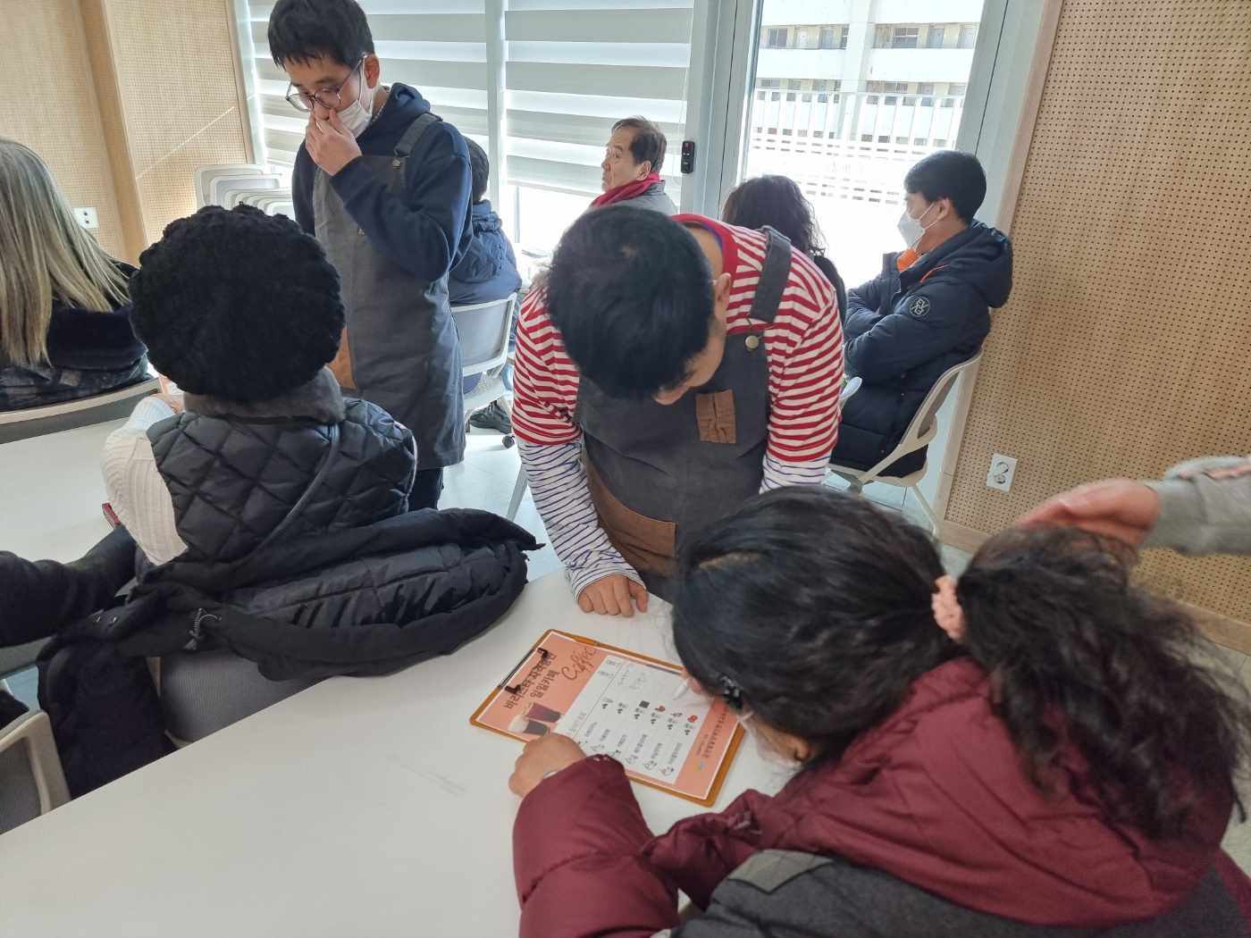 바리스타 자격을 취득한 이용자분들이 부모님께 주문을 받아