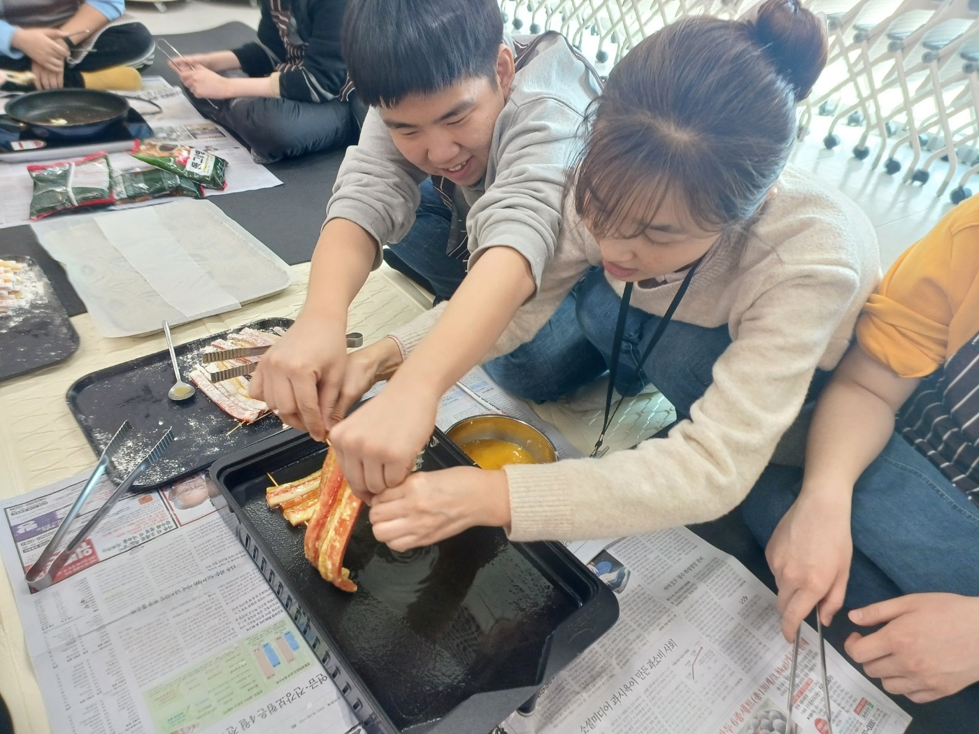 ▼ 꼬치전과 동그랑땡을 부쳐 이웃 반과 함께 나눠 먹으며~