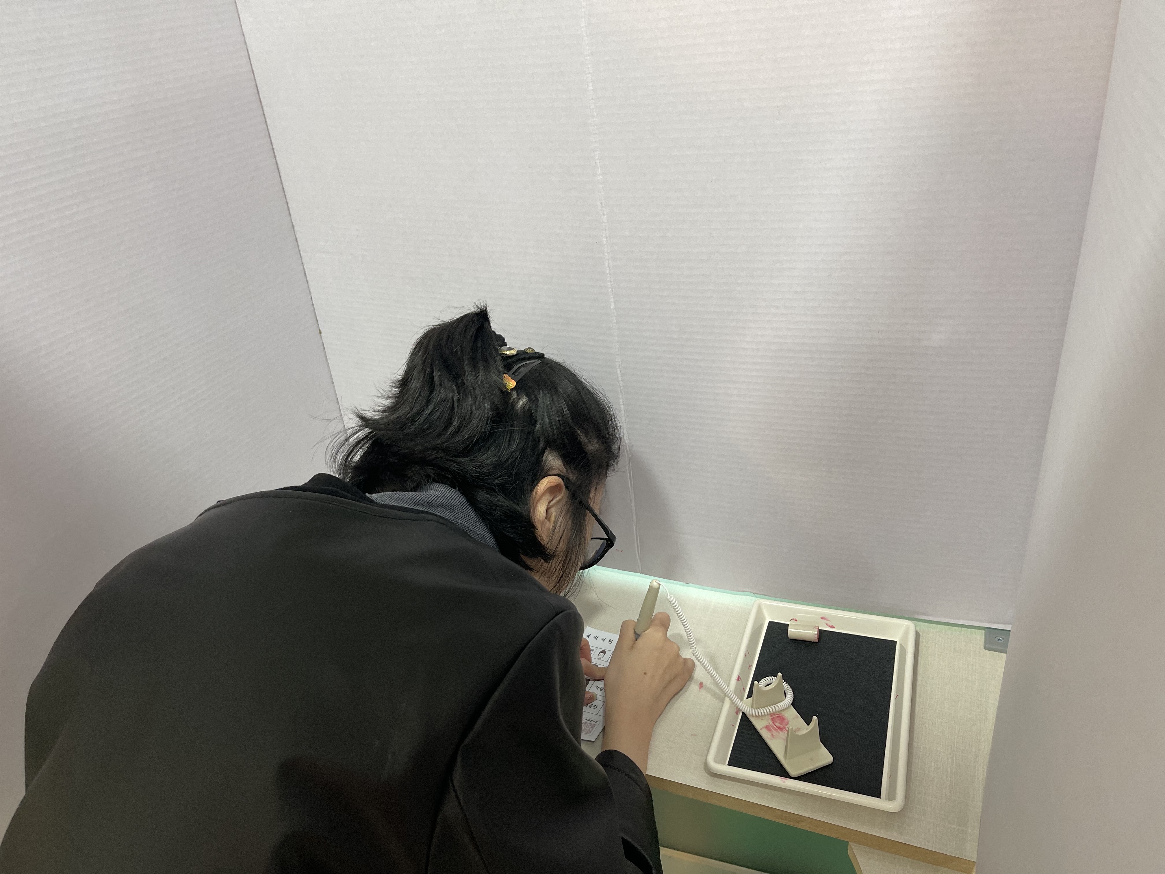 ▼ 투표 용지에서 내가 원하는 후보를 살펴보고 도장을 정확하게 찍어요.