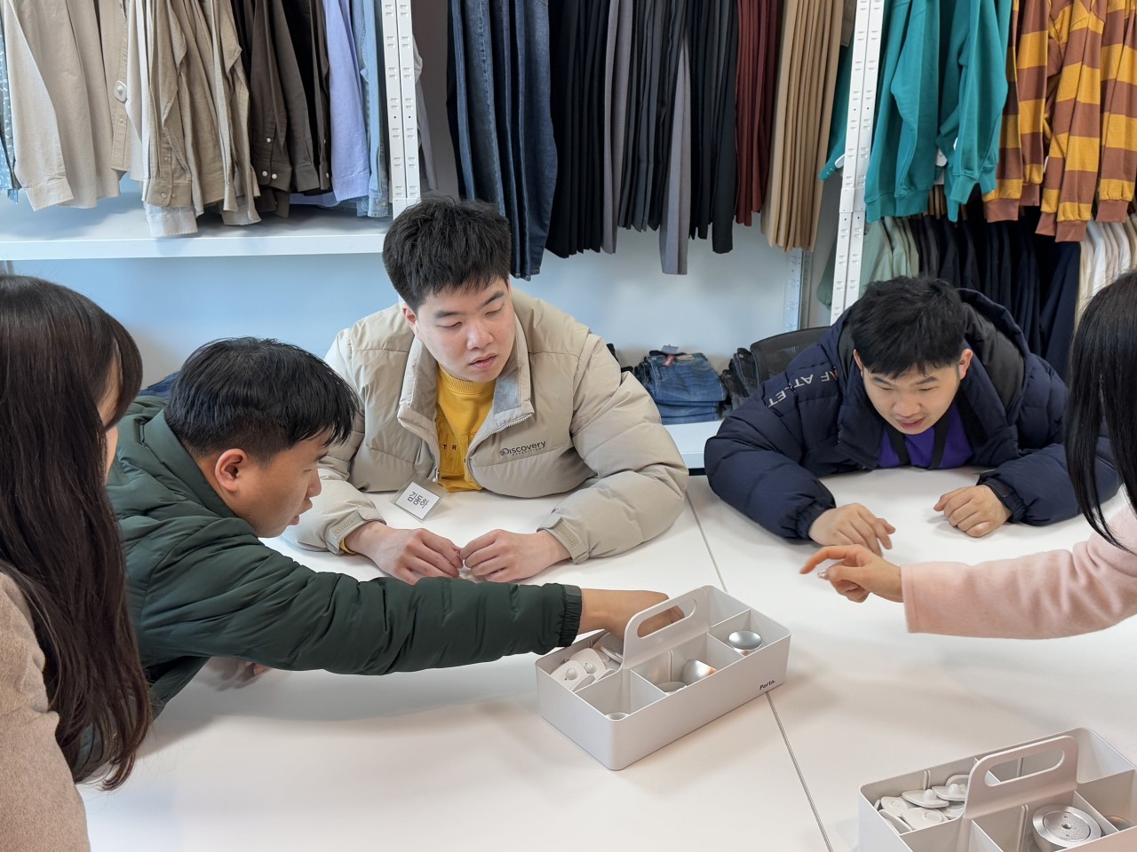 의류정리 업무에서는 폴딩, 행잉, 보안택 달기 등 다양한 작업을 하며 실제 매장에서 필요한 능력을 배웠고,
