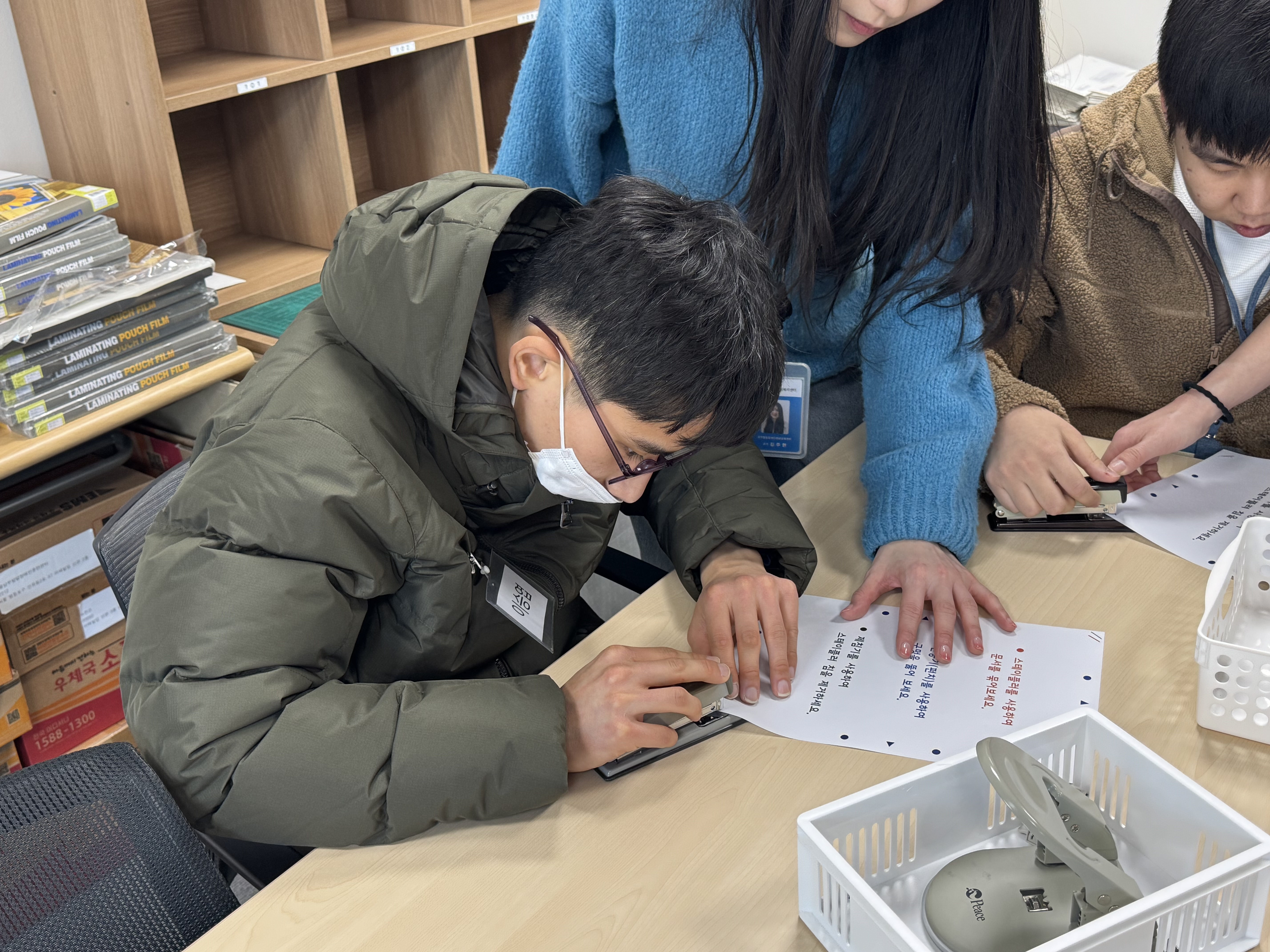 이번 체험은 두 개의 조로 나누어 '스파오 의류매장정리원'과 '사무보조' 직무를 경험하며