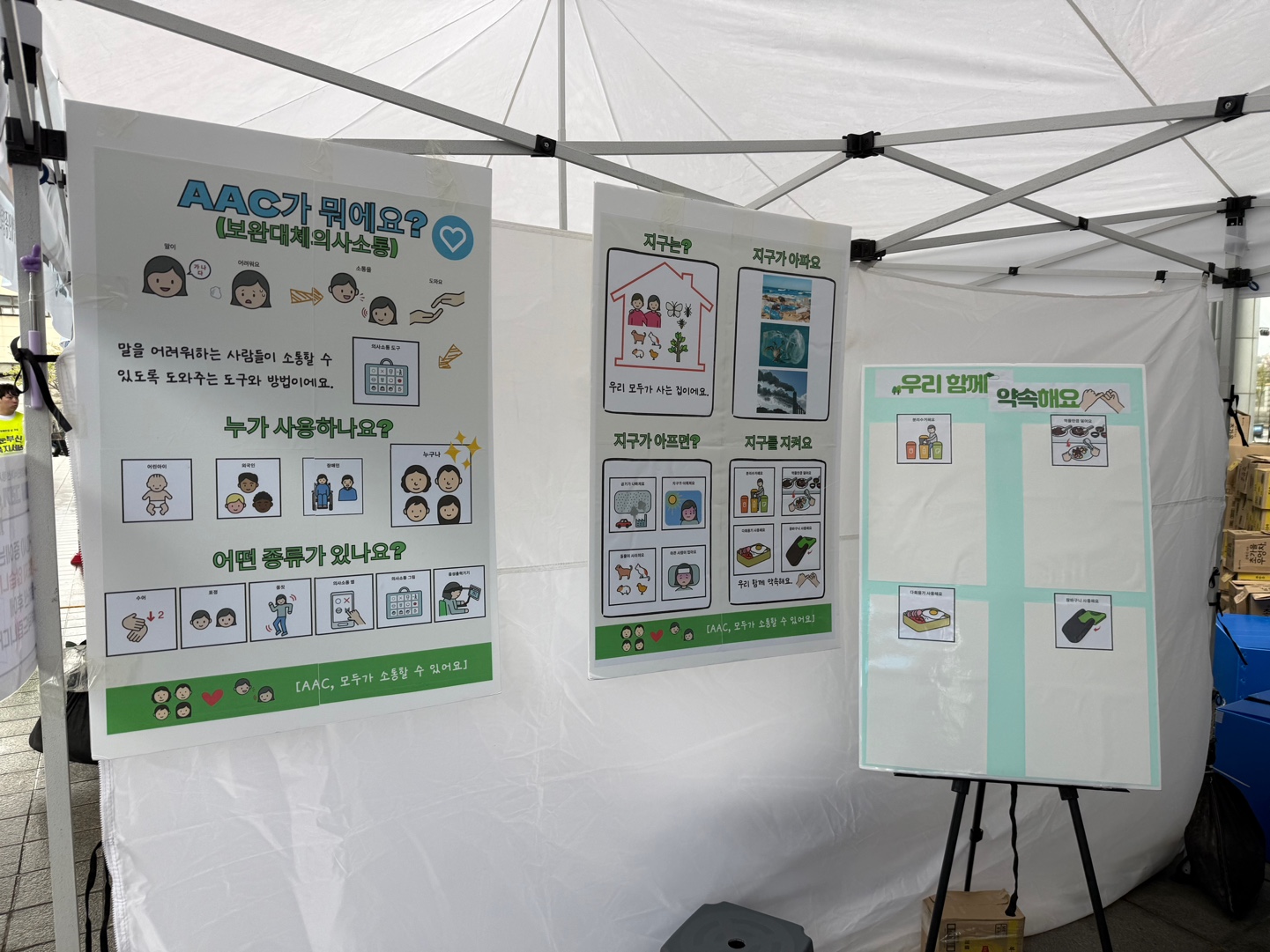 우리 센터에서는 'AAC와 함께하는 지구살리기 챌린지' 부스를 운영하며