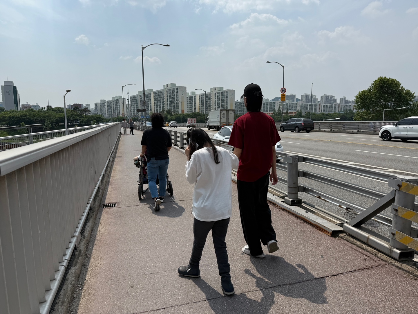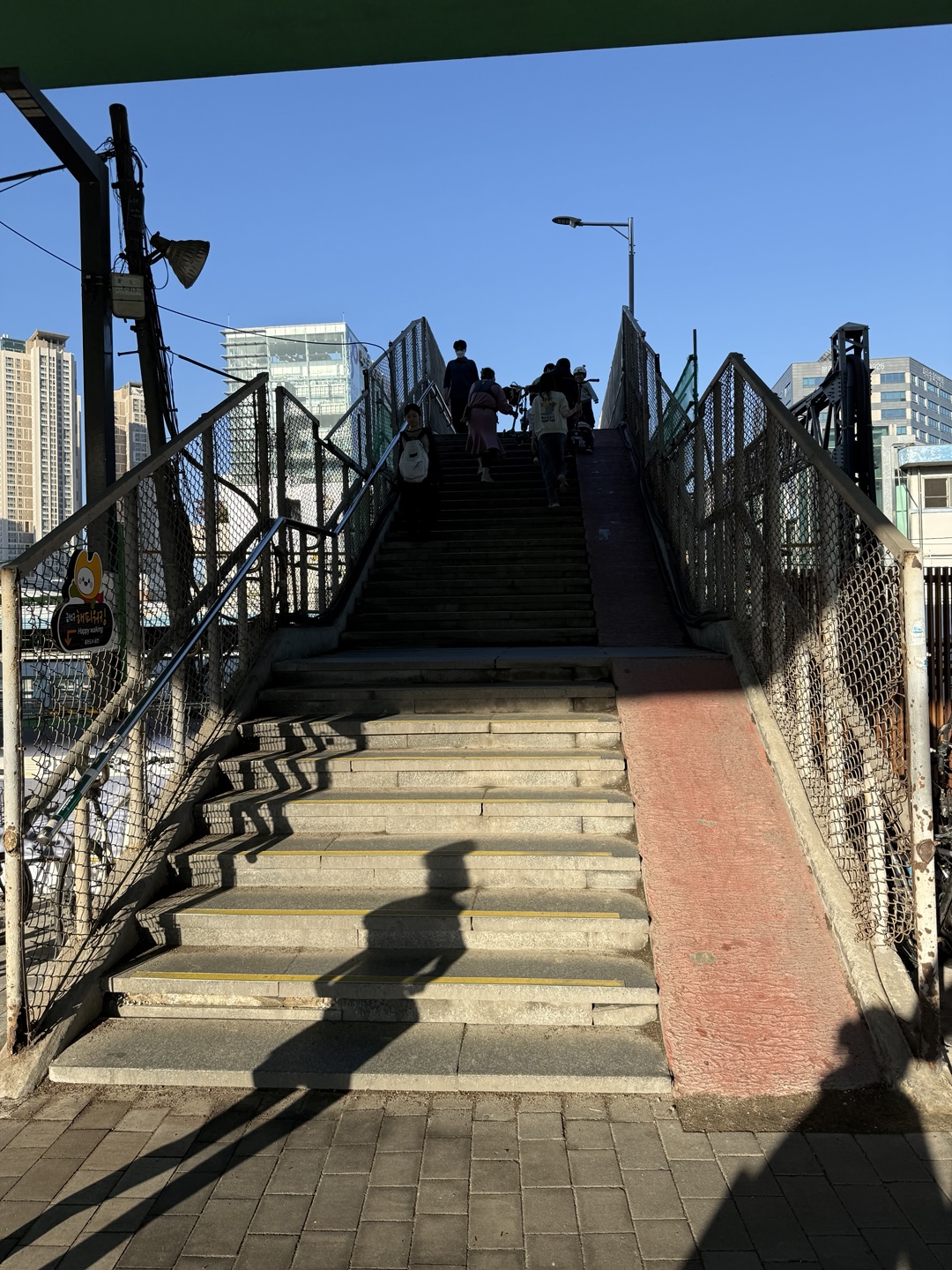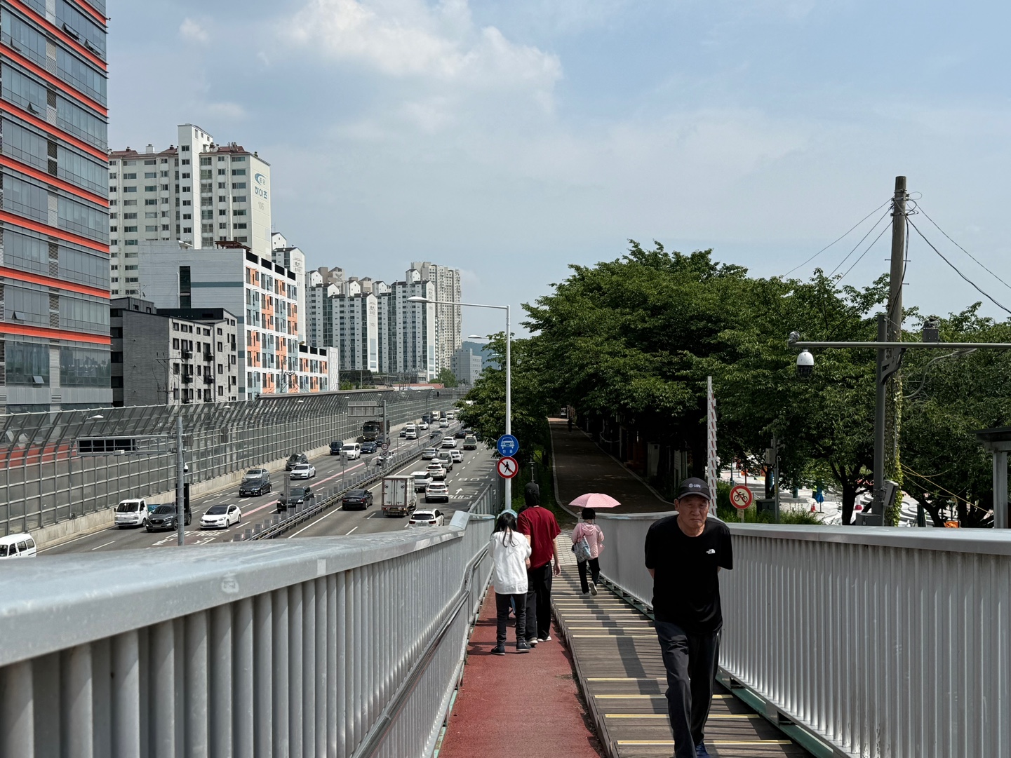 조금 더 걷고싶어하는 이용자분은 내리막을 이용하여 육교를 건넜습니다.