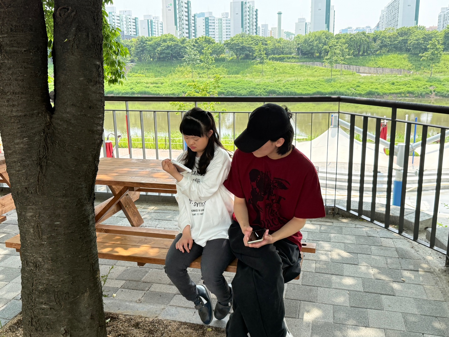 각자만의 방식으로 안양천에서 즐거운 시간을 보내었습니다.