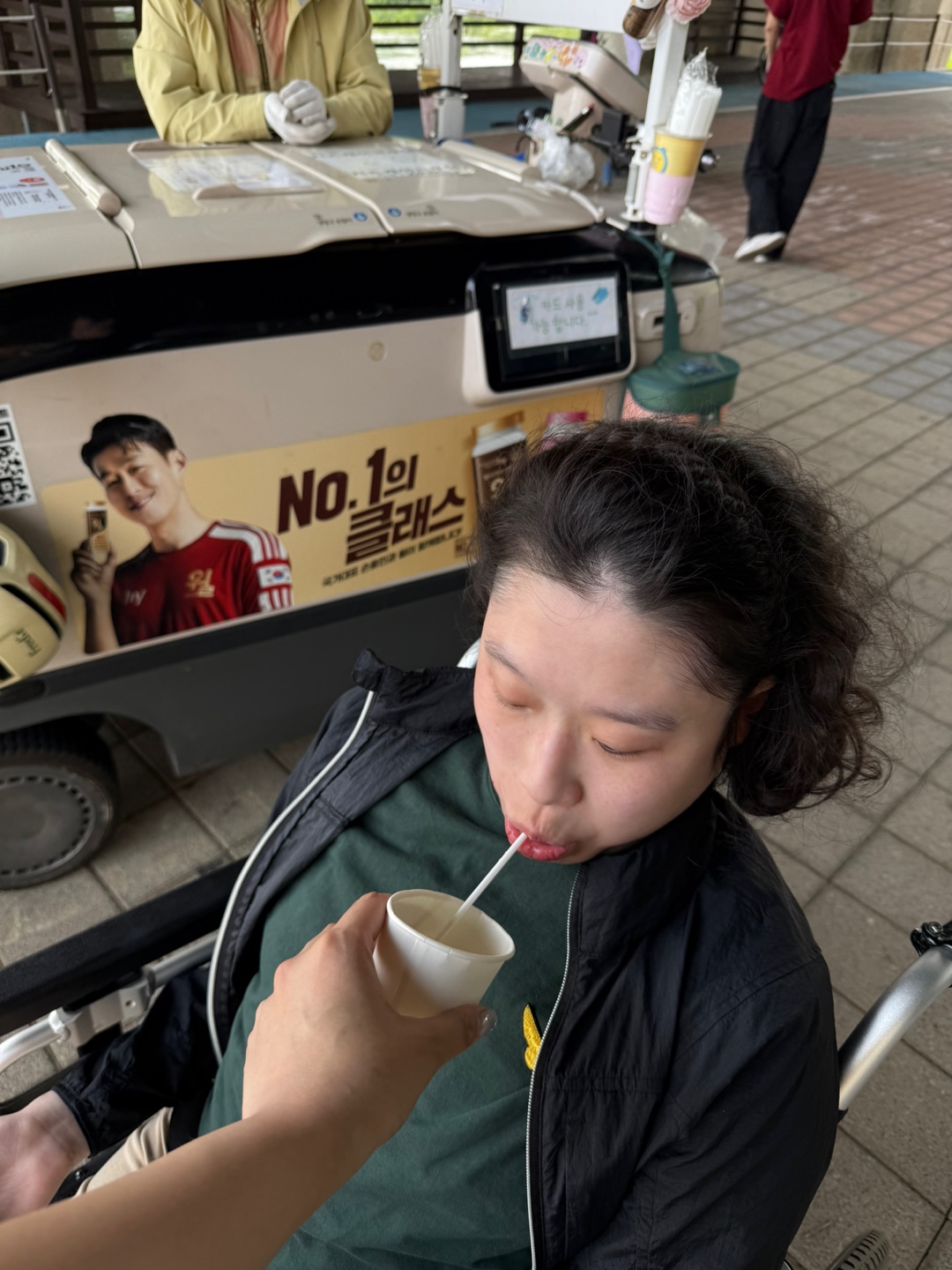 요구르트자동차를 보고 먹고싶다고 하셔서 커피도 한잔 먹어주고요~!