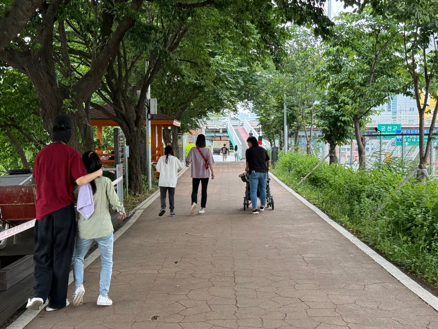 저희 센터에서 이용자분들을 모시고 안양천을 방문하려고 하면 금천구청역 옆에 있는 육교를 건너 가야하는데요 ~!