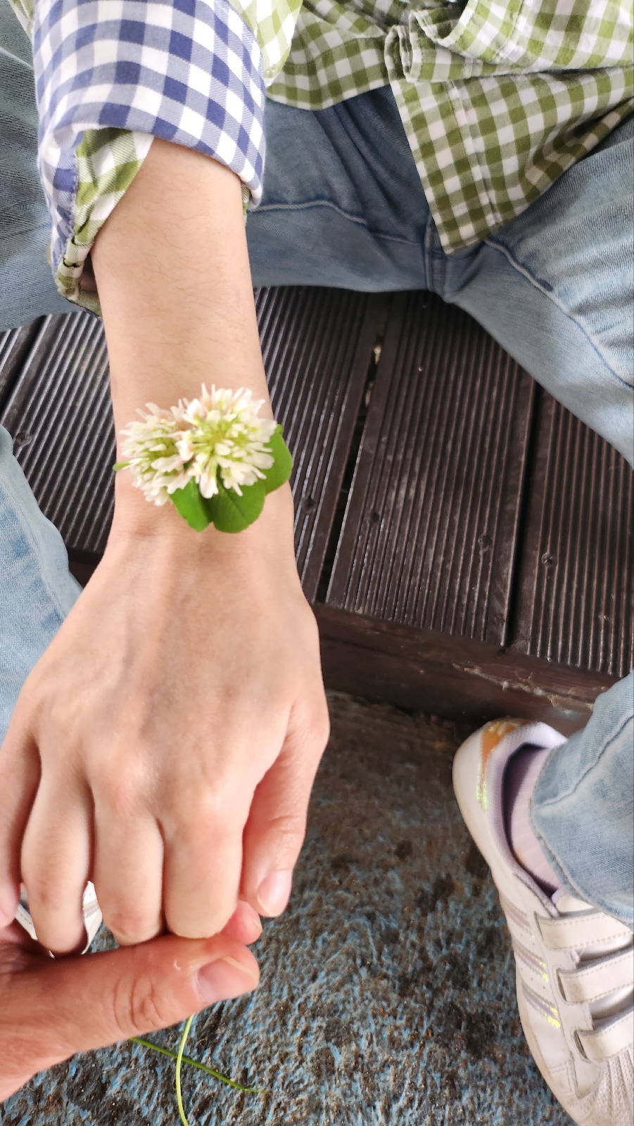 토끼풀을 뜯어 팔찌도 만들어보았습니다.