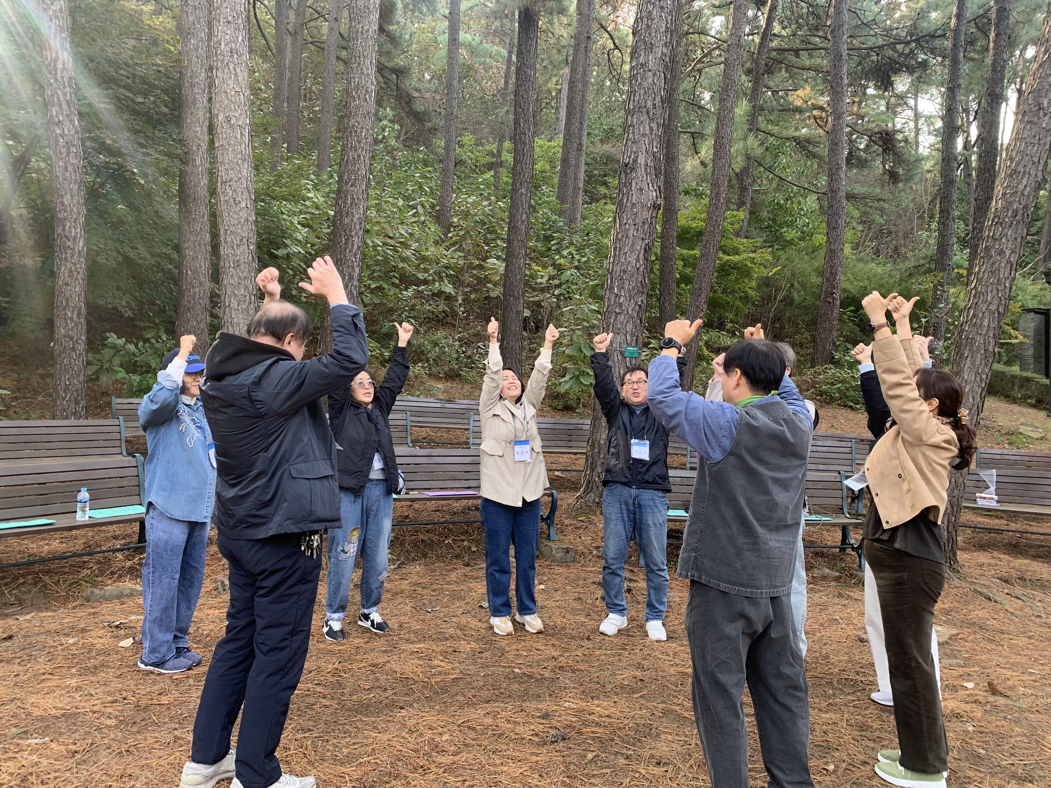 숲의 기운을 느끼고, 서로에게 따뜻한 에너지를 나누었습니다.
