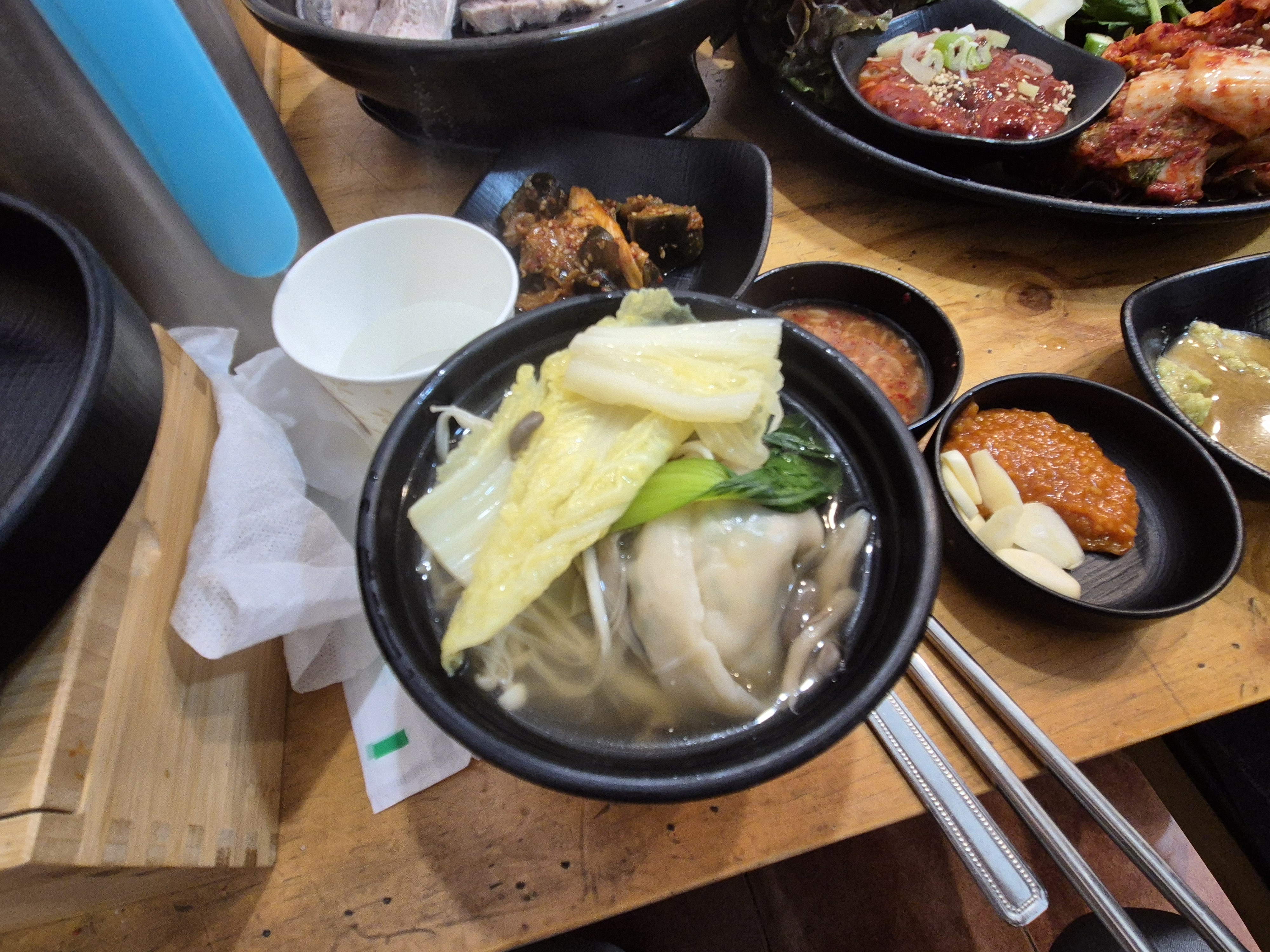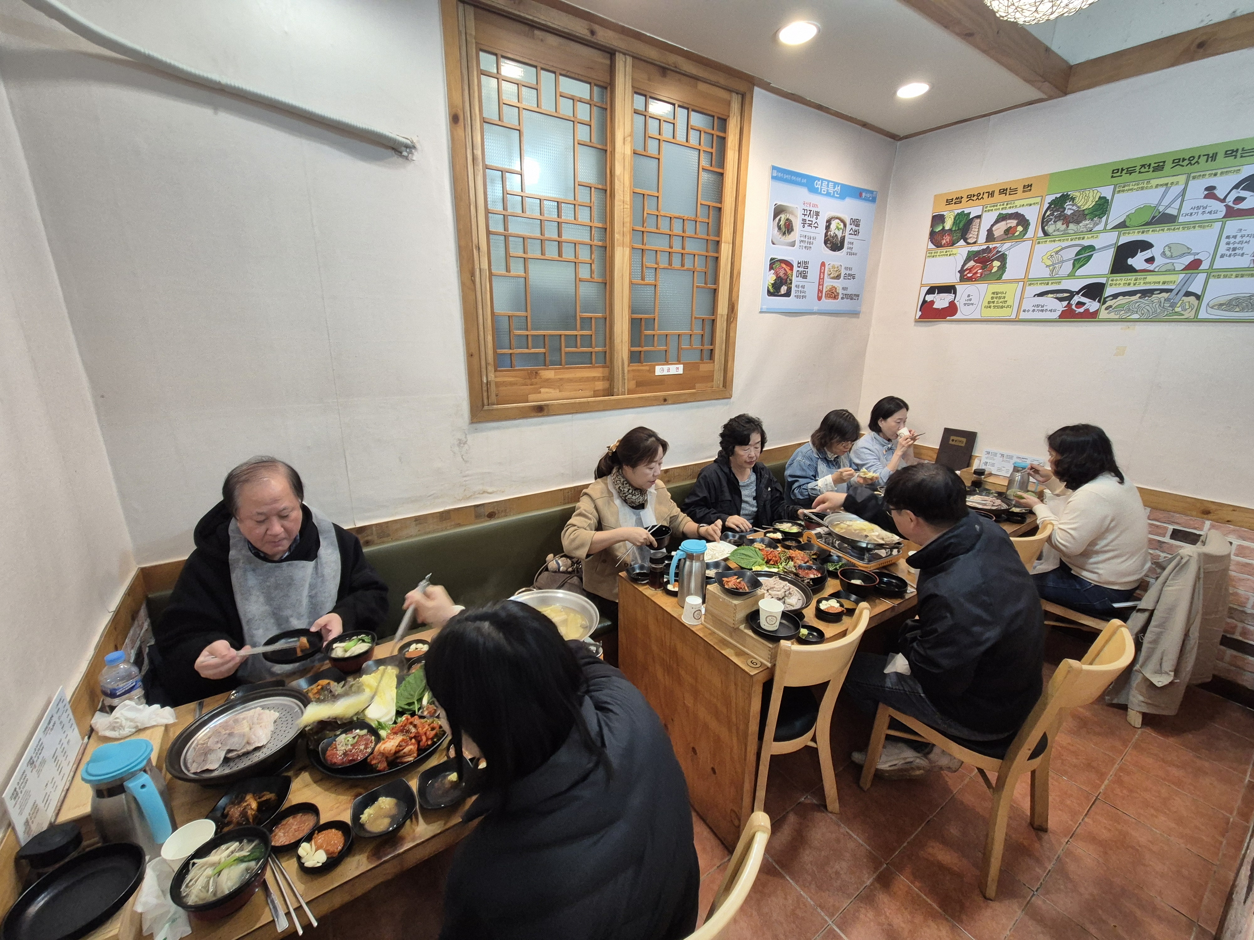 숲 체험 후에는 인근 식당에서 보쌈과 만두전골로 든든한 점심식사를 하고,