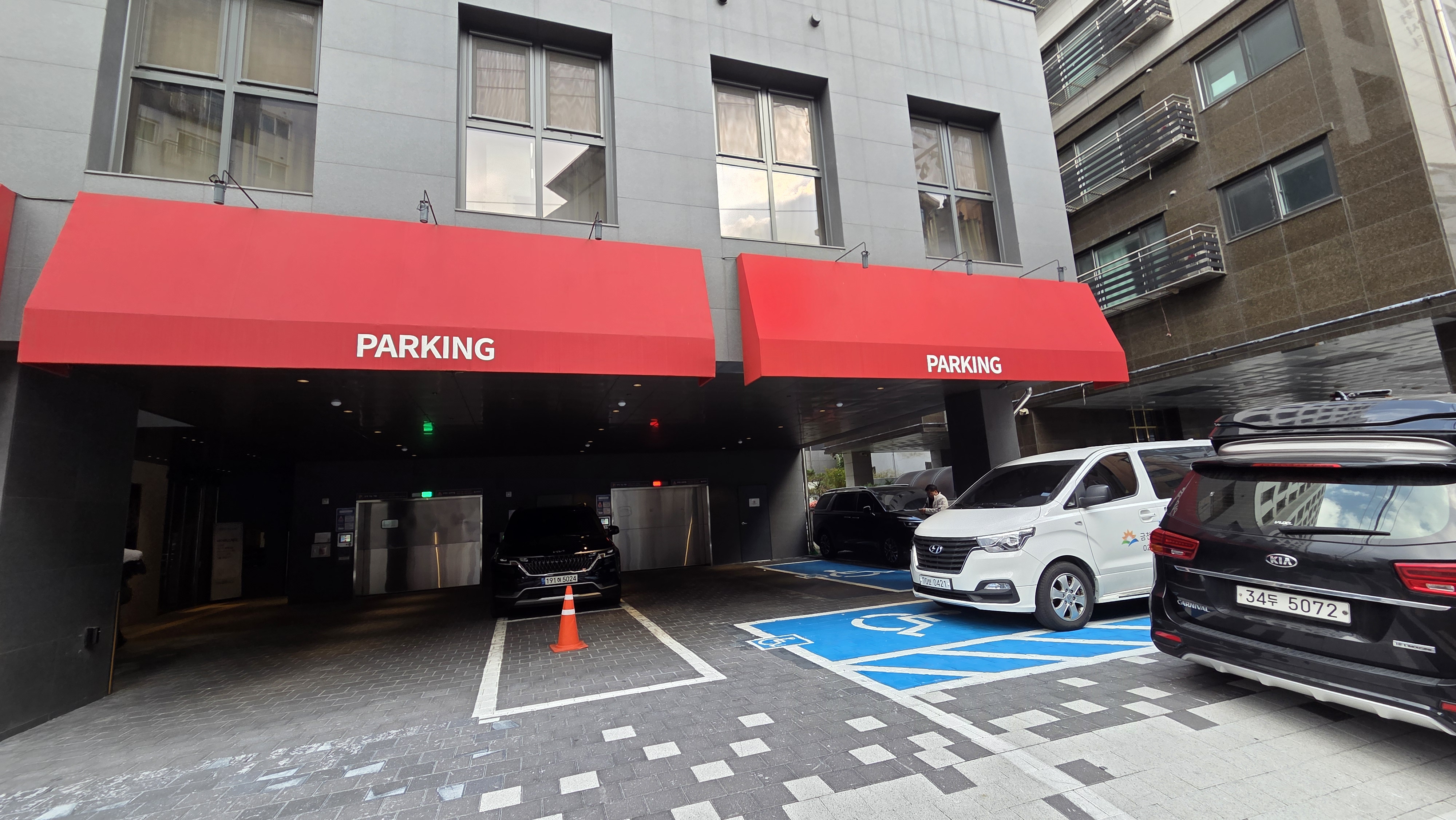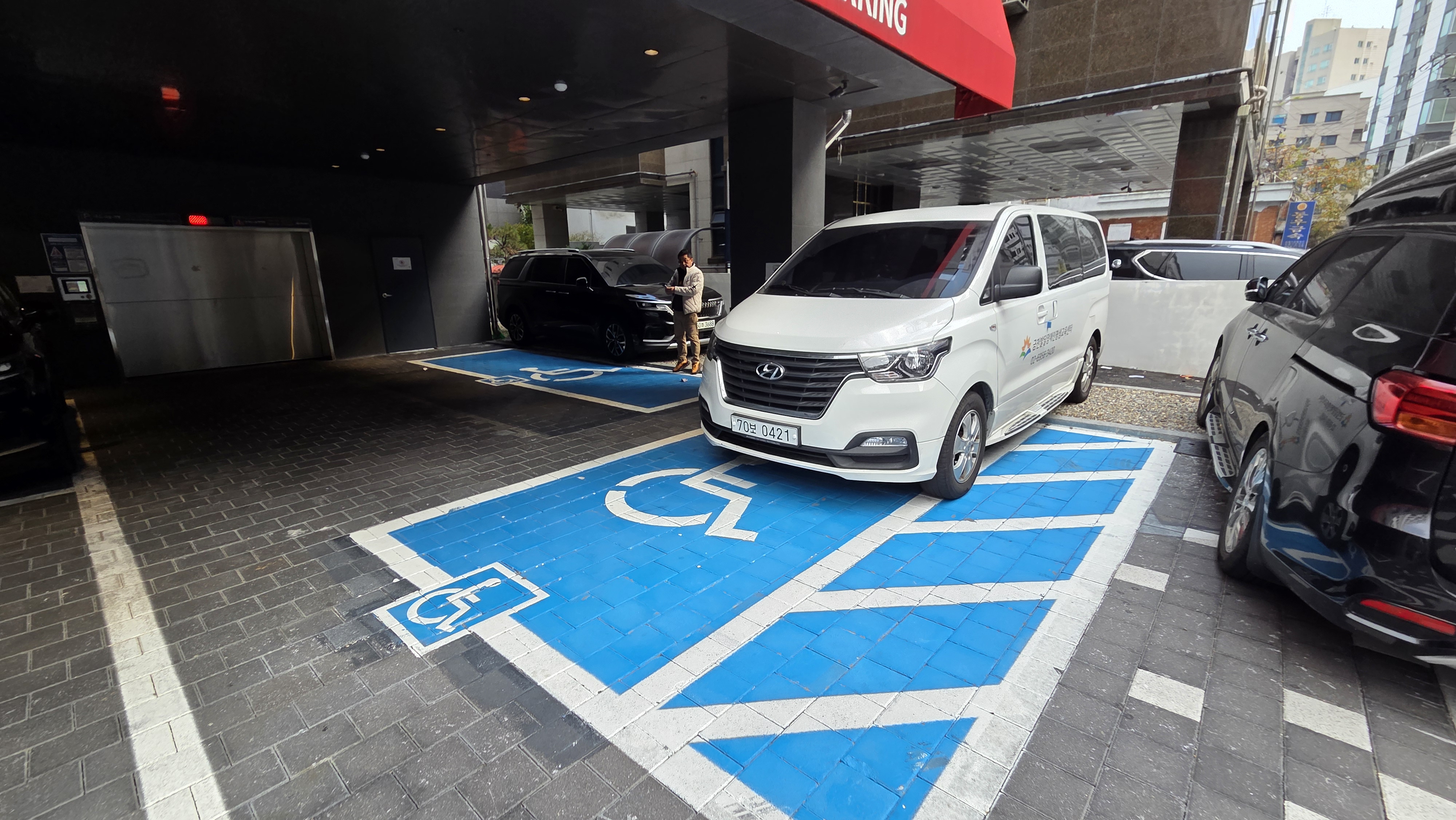 호텔 1층에 장애인주차구역이 있음에도 불구하고 주차에 어려움이 있었습니다.