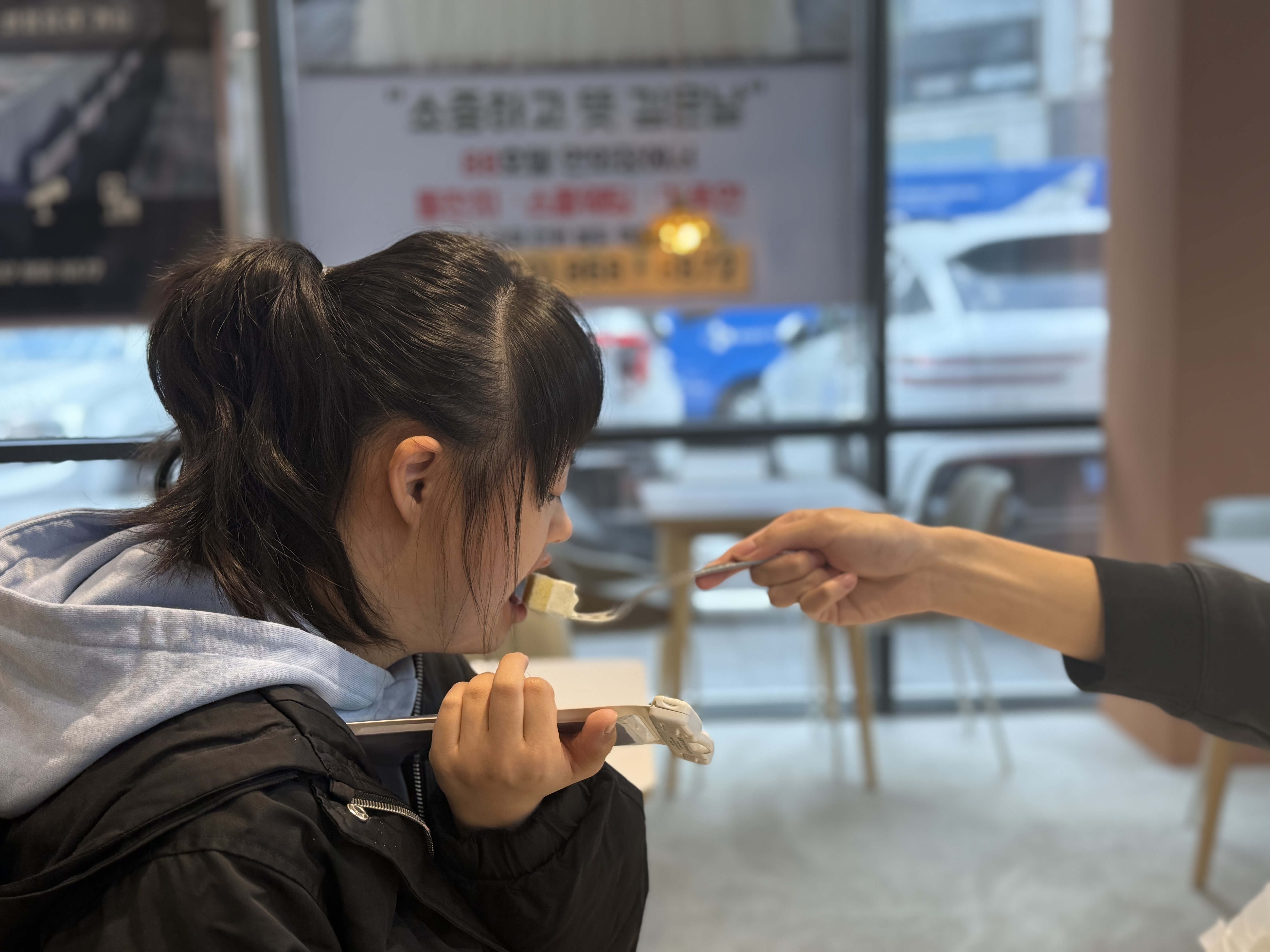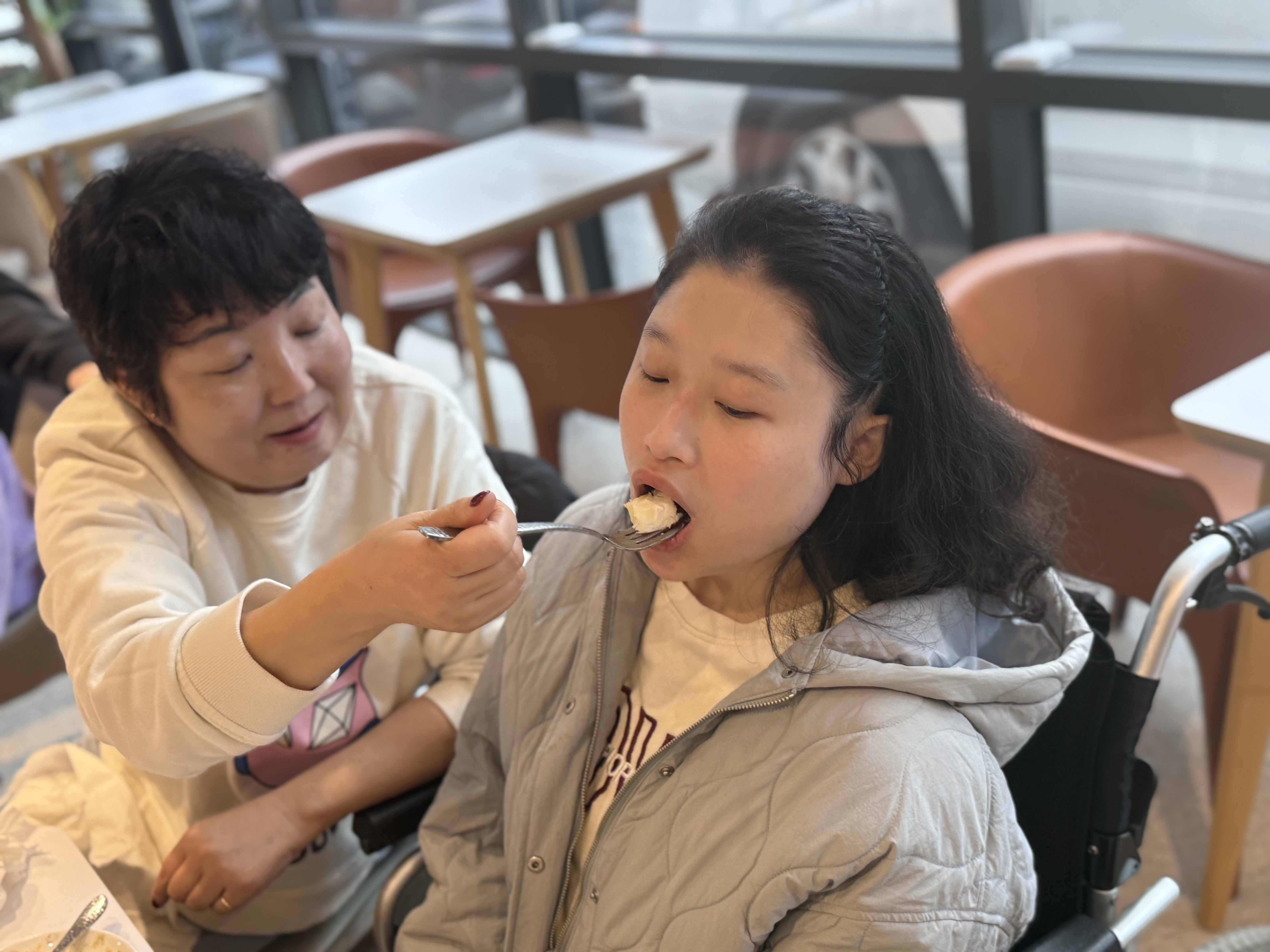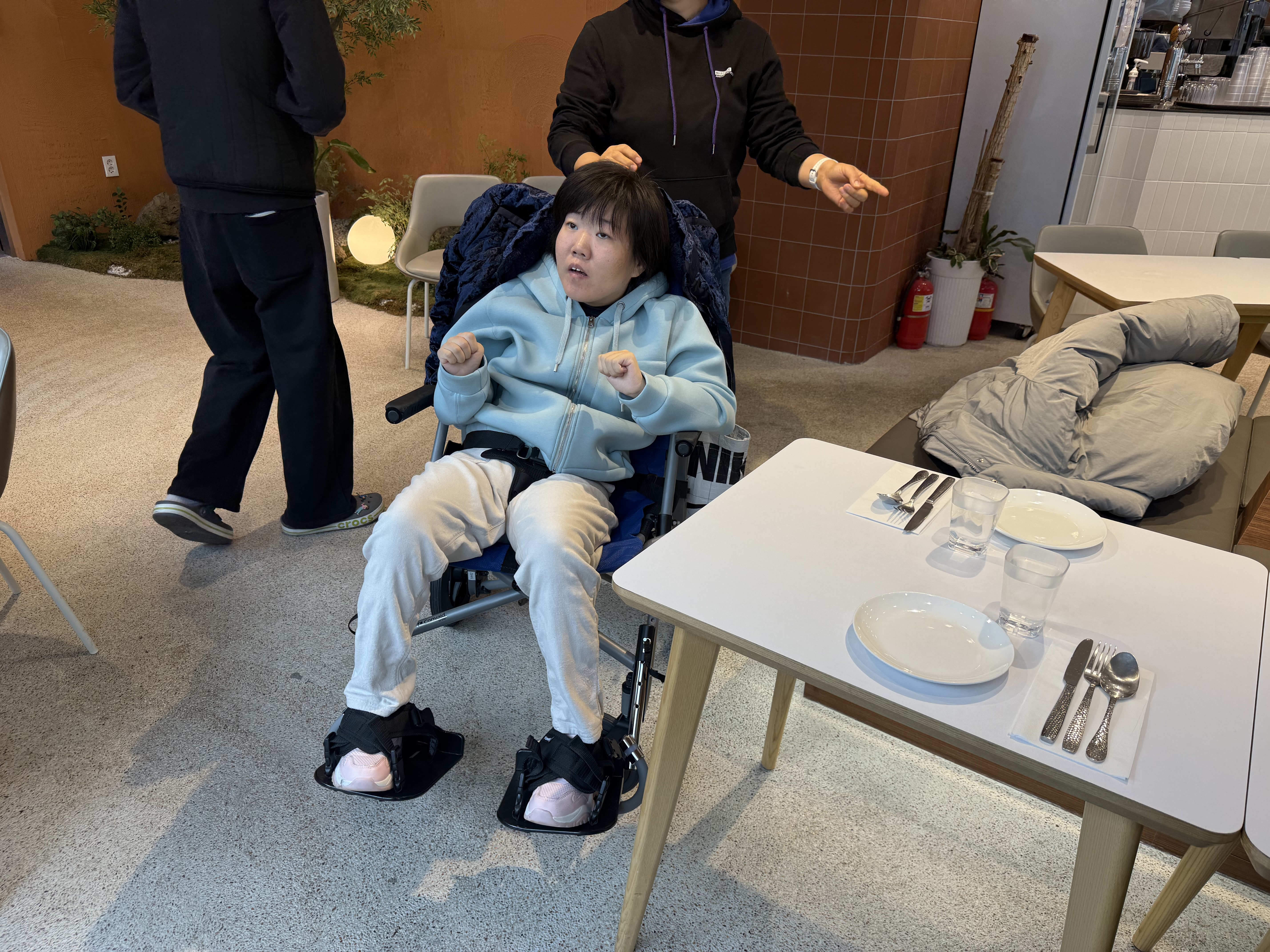 마지막으로 휠체어가 식당을 이용하기에 식탁이 낮고 좁아 식사할 때 불편함이 있어