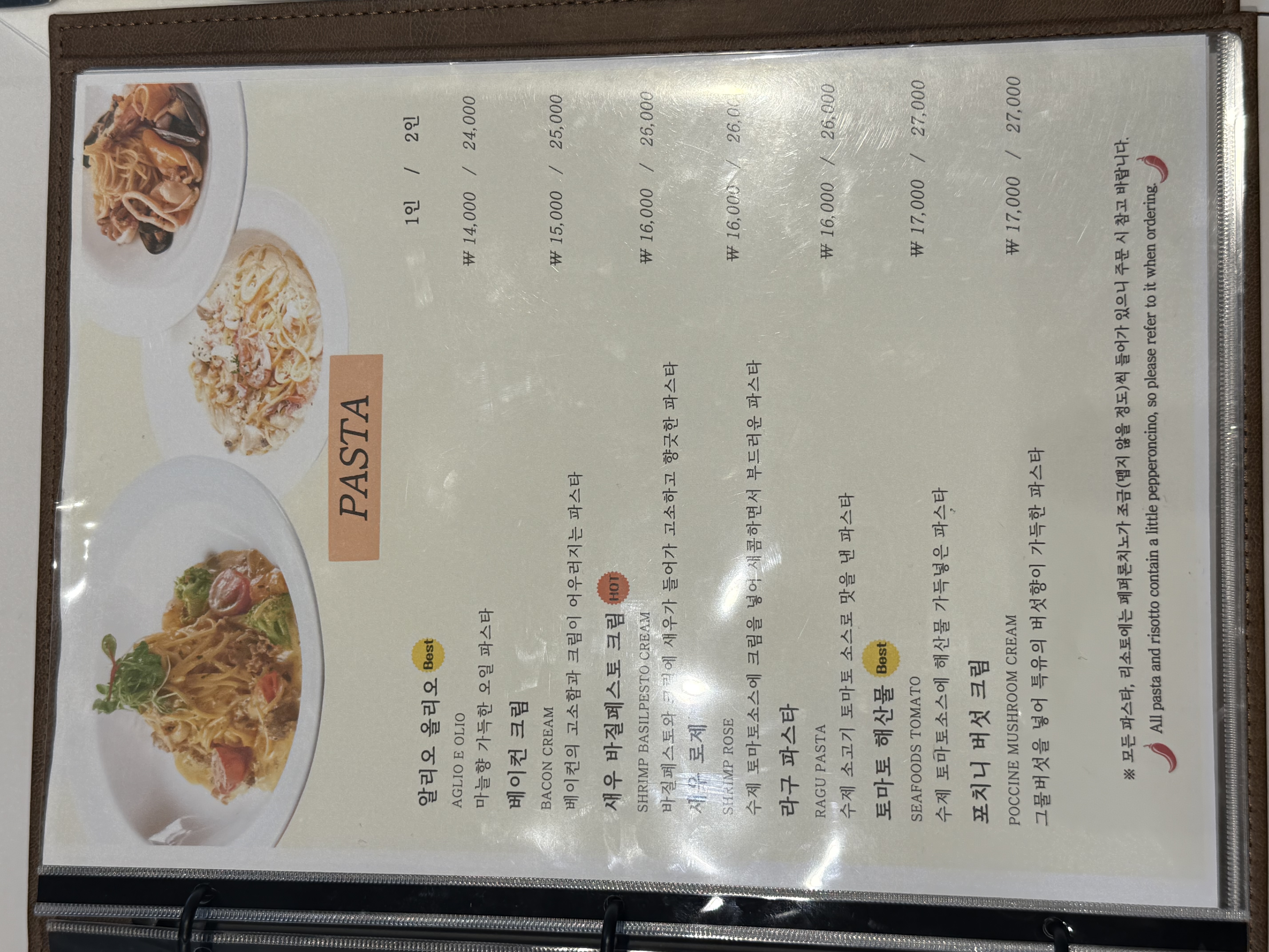 파스타와 필라프, 리조또는 2인분 정도의 양이라 푸짐하니 주문하실 때 참고해주세요 !ㅎㅎ