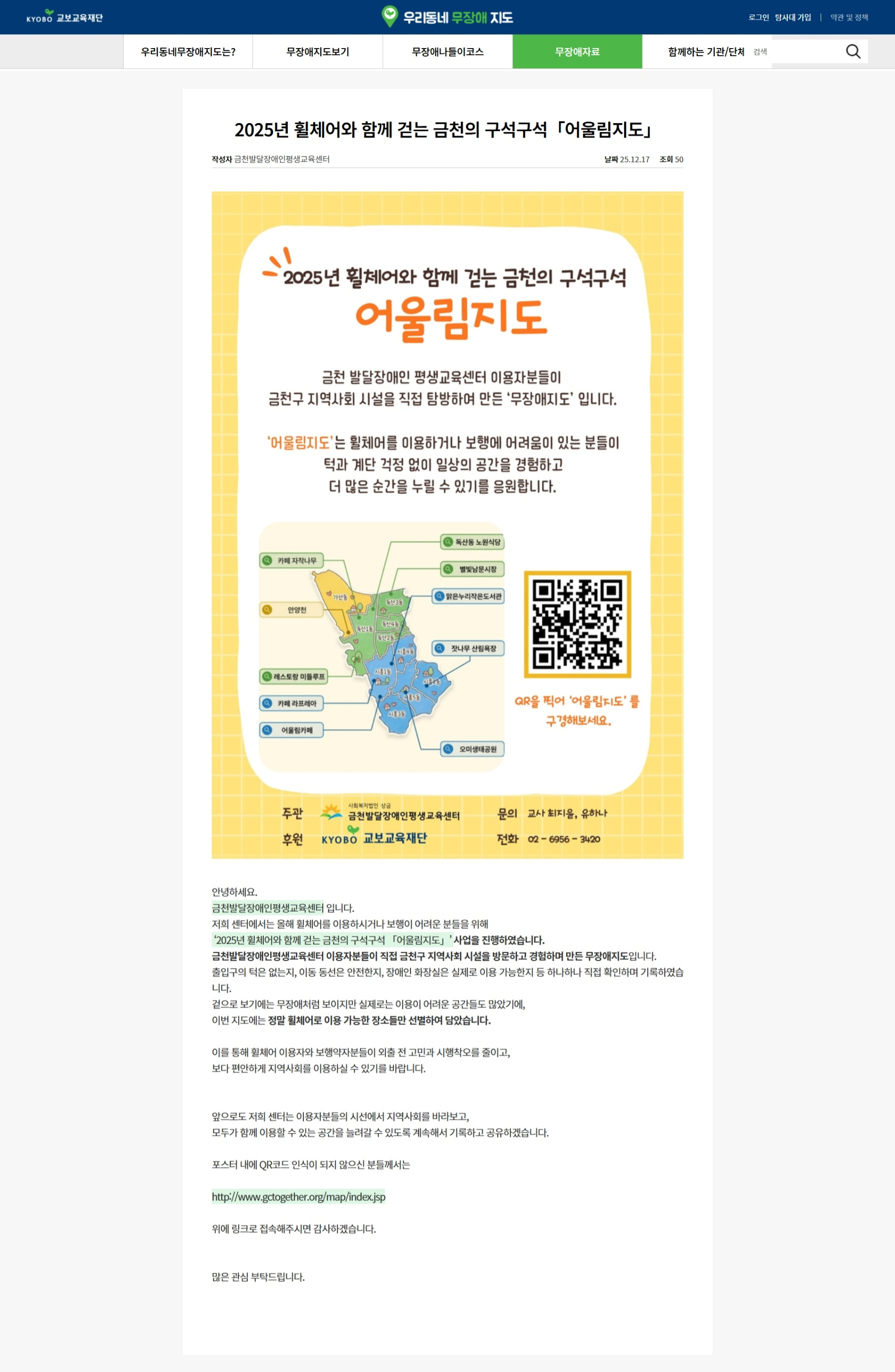 '교보교육재단 우리동네무장애지도' 홈페이지