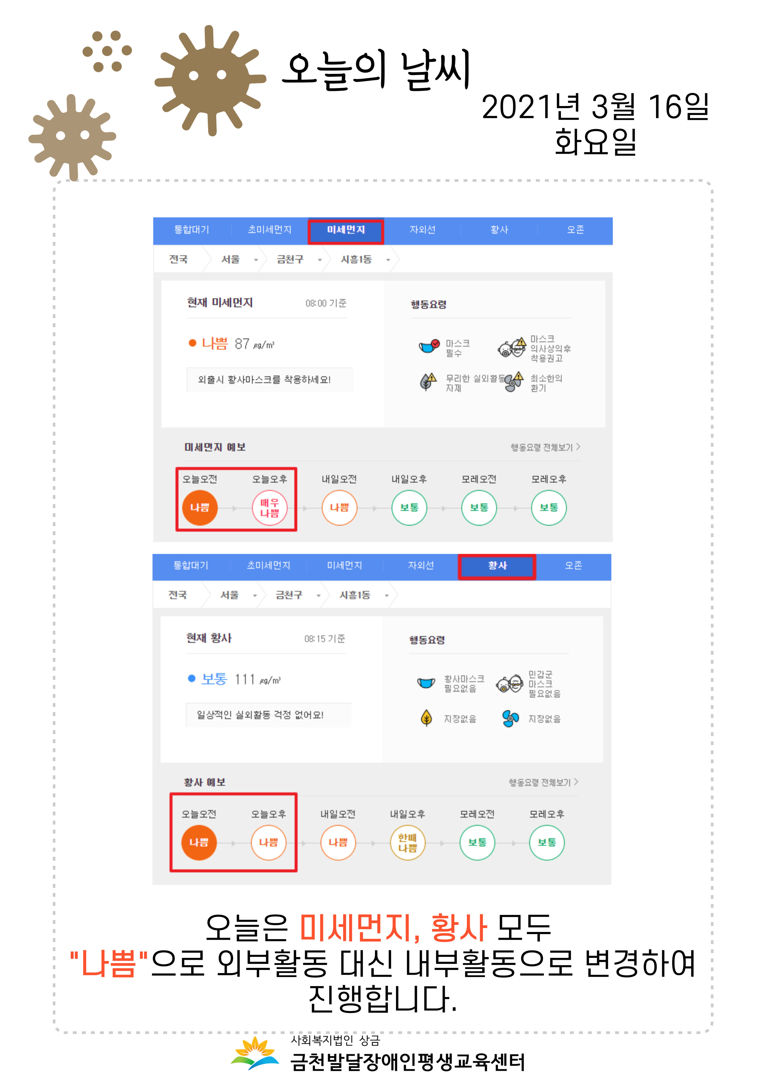 미세먼지 또는 황사가 "나쁨"일 경우,